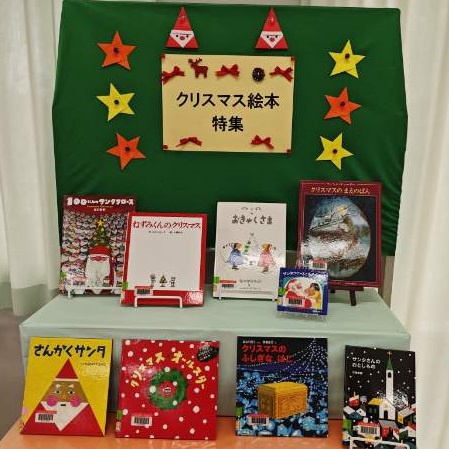 12月のイベントといえばクリスマス。 図書館ではサンタクロースやクリスマスをテーマにした絵本を集めて展示しています。 お気にいりのクリスマス絵本、ぜひ探してみてくださいね。